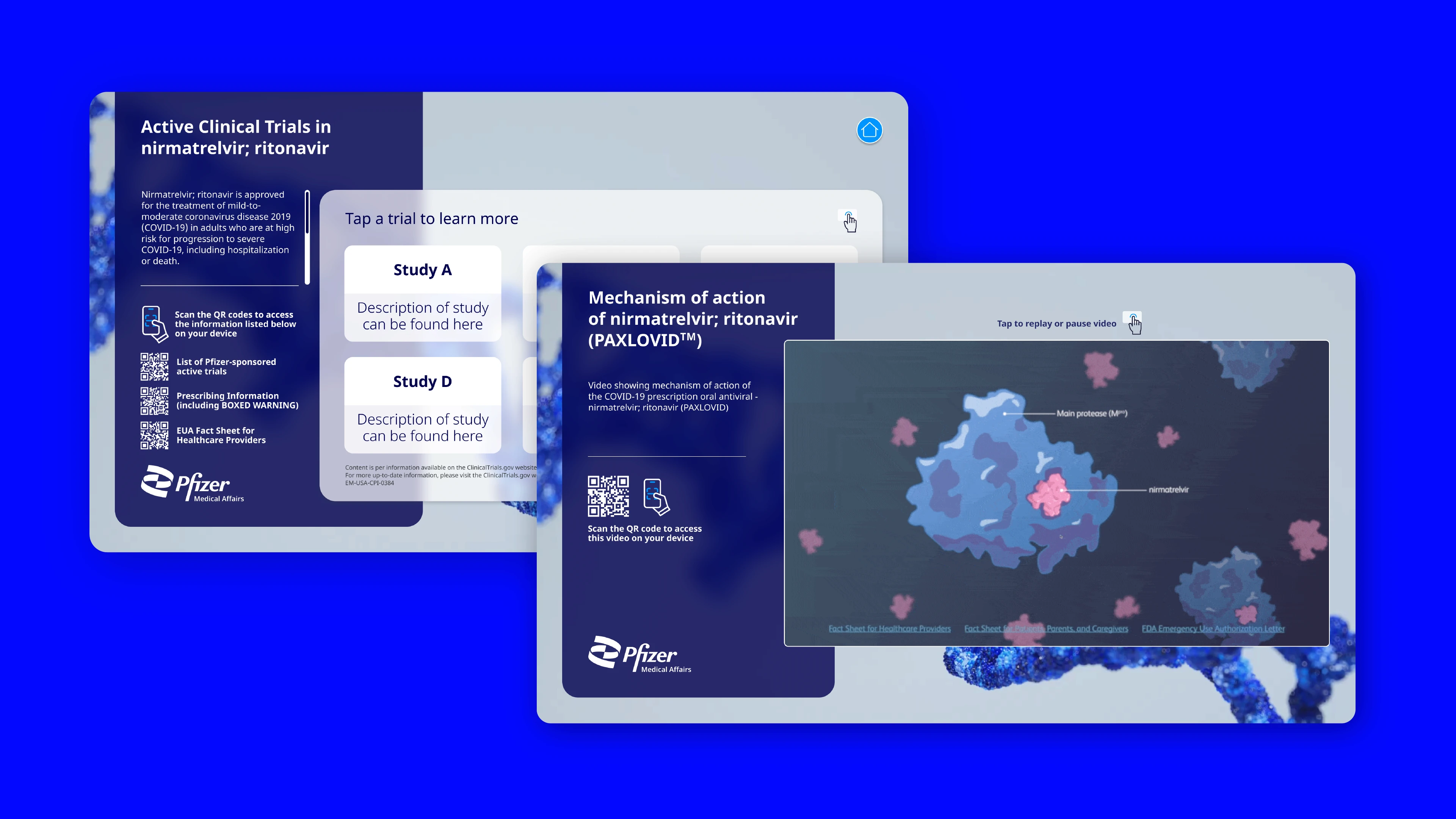 Touchscreen designs for IDWeek, focused on delivering important clinical trial pipelines across key therapeutic areas for Pfizer.